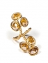 A handwired gold plated aluminum ring showcases wire wrapping technique connecting six complimentary champagne colored German crystals. Adjustable.